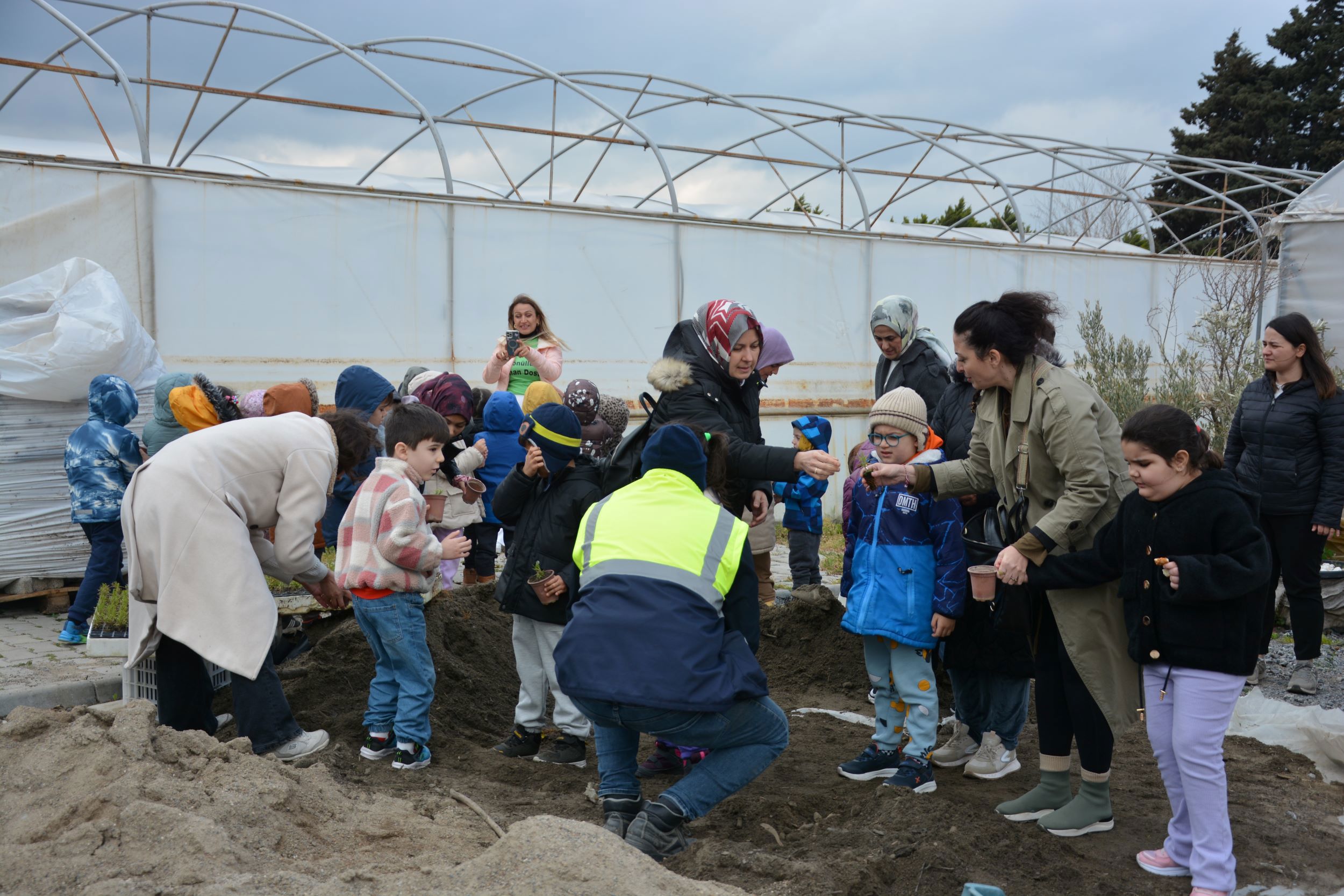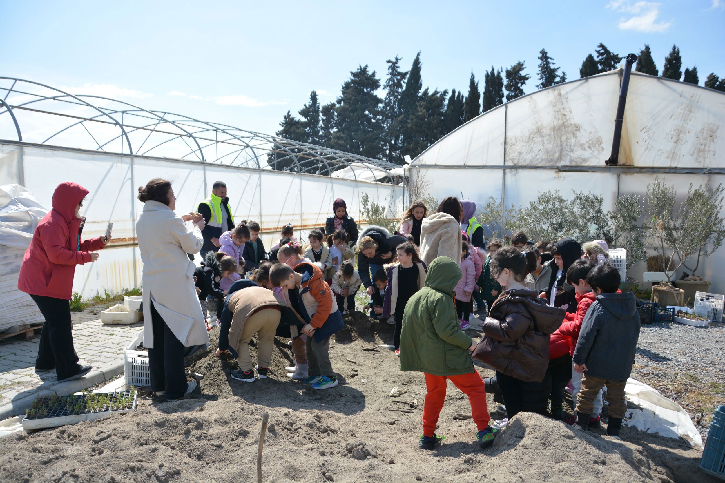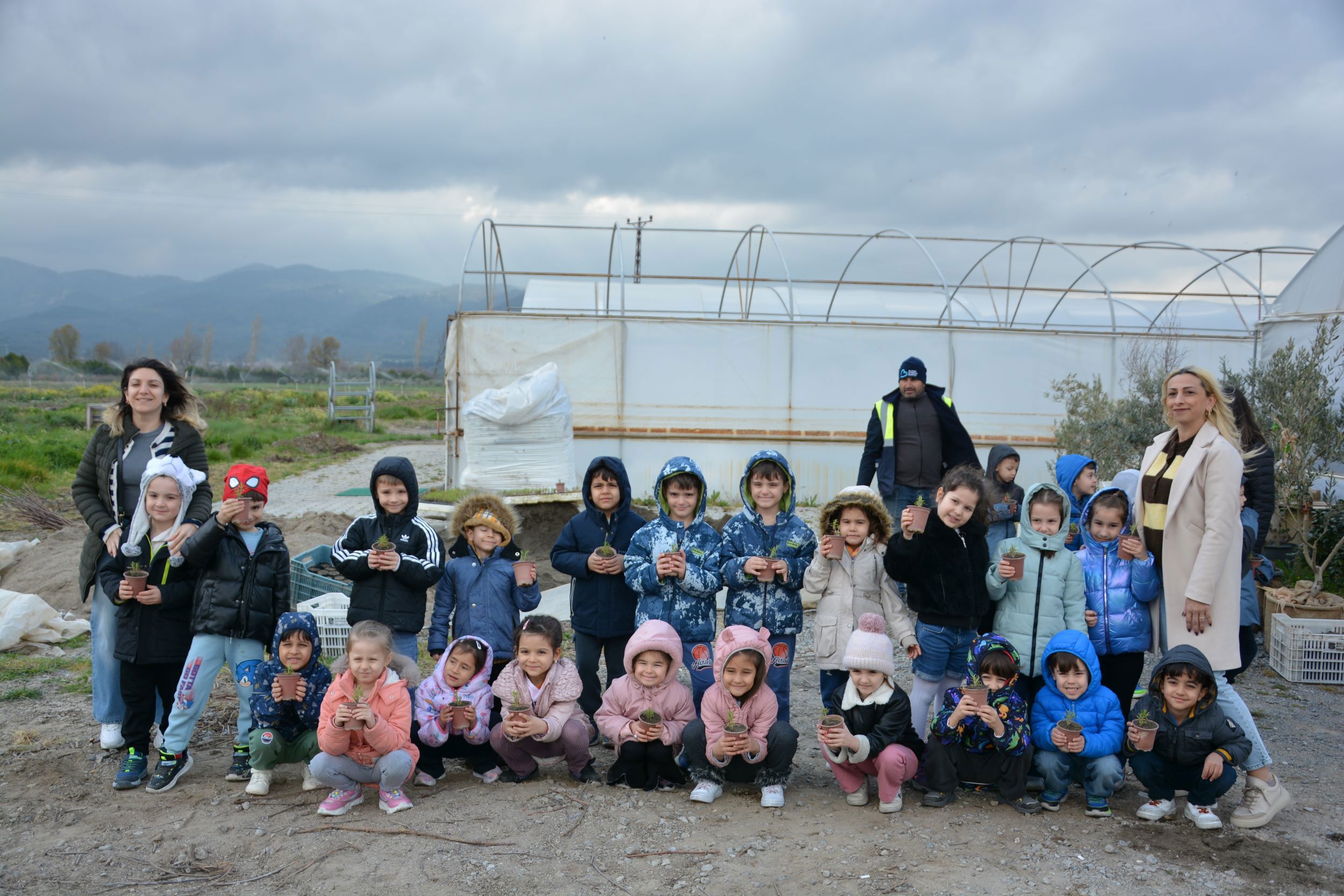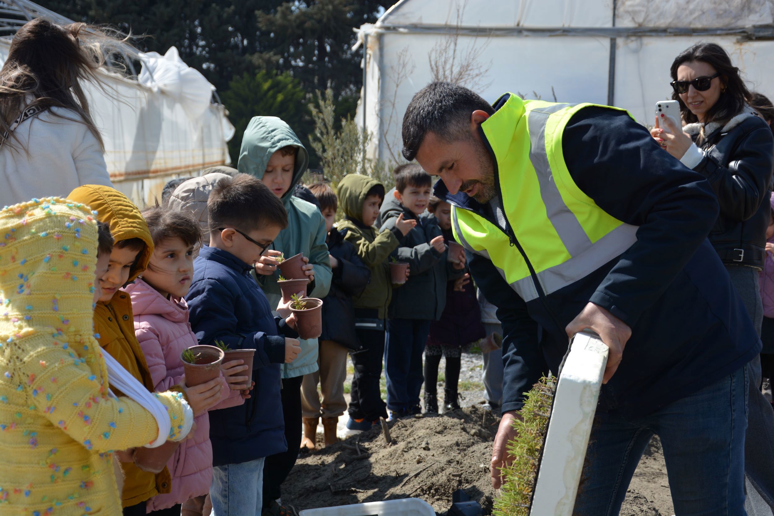 Minik öğrenciler, kendilerine hediye edilen fidanları BAÇEM serasında toprakla buluşturdu. Fidanlara can suyunu da kendi elleriyle veren çocuklar, hayatlarında ilk kez fidan dikmenin heyecanını ve mutluluğunu yaşadı.